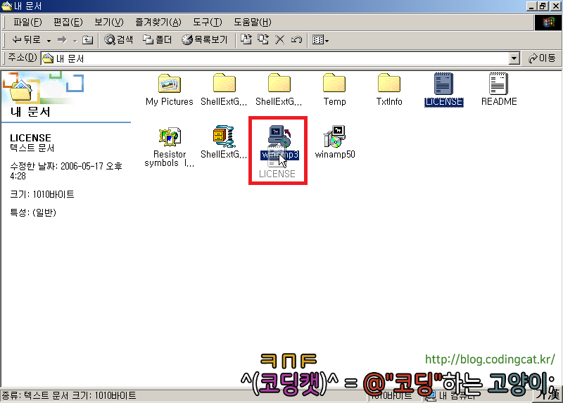 만일 드래그 중인 마우스 포인터가 ‘드롭’할 대상이 아닌 파일 위를 지나갈 때는 아무것도 변하지 않습니다.