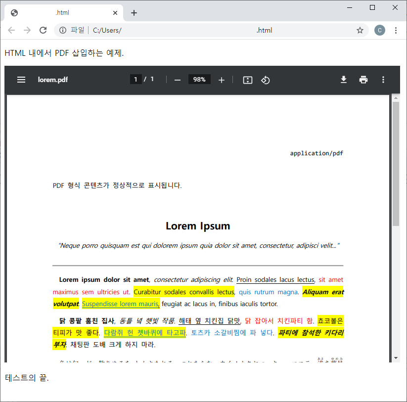 HTML 내부에 PDF 파일 삽입하기