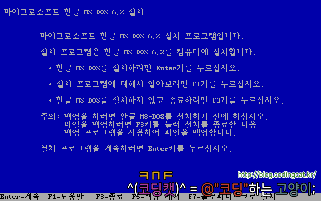 마이크로소프트 한글 MS-DOS 6.2 설치 프로그램입니다.