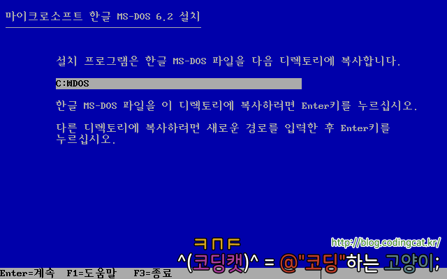 MS-DOS가 설치될 디렉토리 경로를 지정한다. 특이 사항이 없으면 C:\DOS