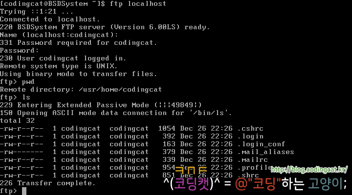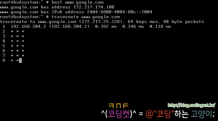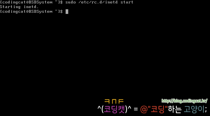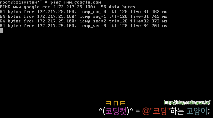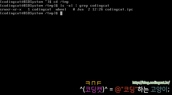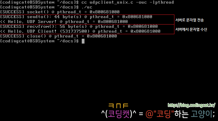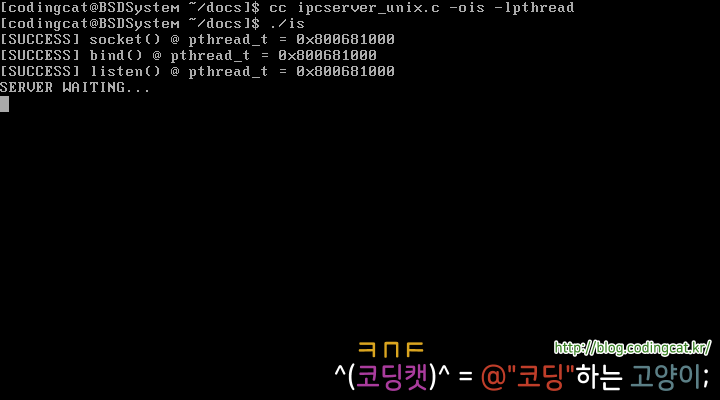 위 소스 코드를 FreeBSD에서는 다음과 같이 컴파일한 후 실행할 수 있다.