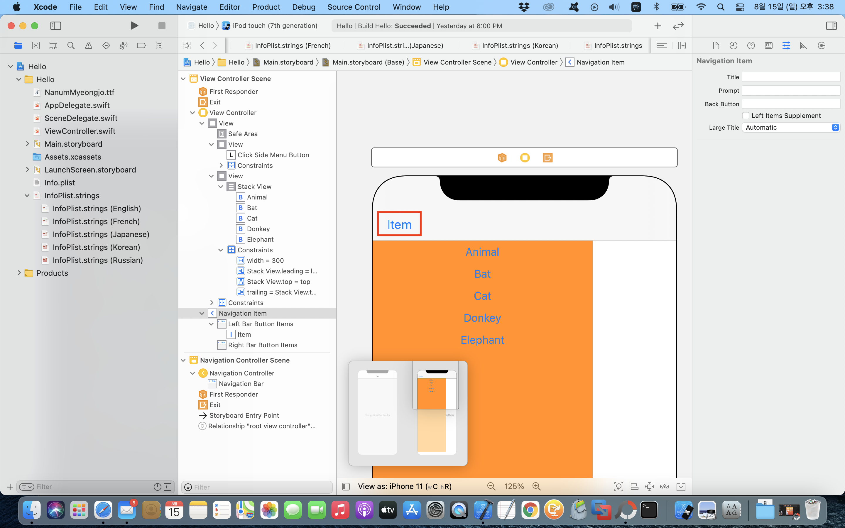 1 단계. 내비게이션 뷰 컨트롤러(Navigation View Controller) 구성하기