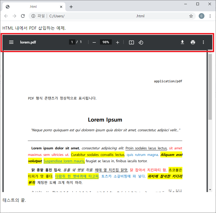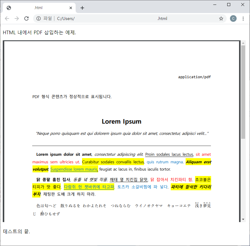 [HTML5] HTML 내부에 PDF 파일 삽입하기